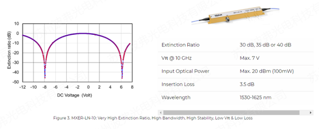 泵浦脈沖的消光比直接影響整個BOTDA測量系統的信噪比。因此,高消光比EOM直接影響BOTDA系統的最大測量范圍和測量速度。MXER-LN系列強度調制器是高性能調制器,具有優越的消光比。該產品的設計依賴于iXblue的“Magic Junction”(專利號n° US2008193077)。MXER-LN系列強度調制器是BOTDA應用中需要高消光和高帶寬組合的關鍵器件。