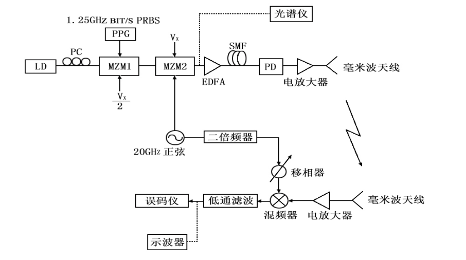 毫米波ROF系統(tǒng)光纖與無(wú)線傳輸系統(tǒng)