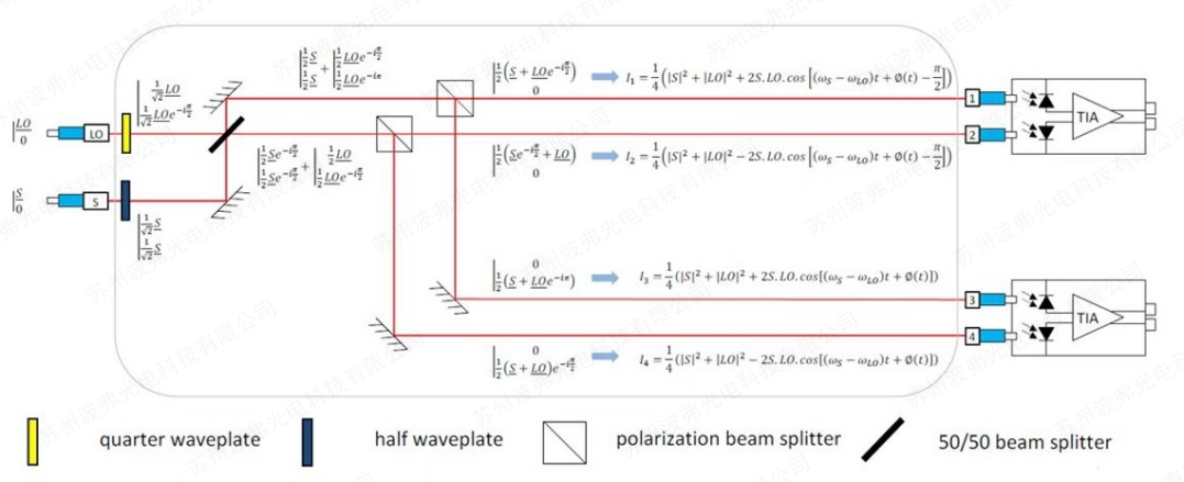COH28和COH28-X基于兩個單偏振90°光混頻器,能夠從具有任何偏振的信號中提取相位、幅度和偏振。