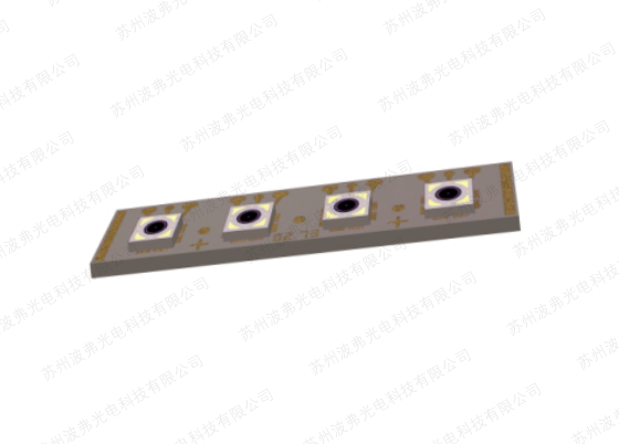 底部照明的4通道光電二極管陣列倒裝焊接在具有環(huán)繞金屬化的陶瓷底座上。