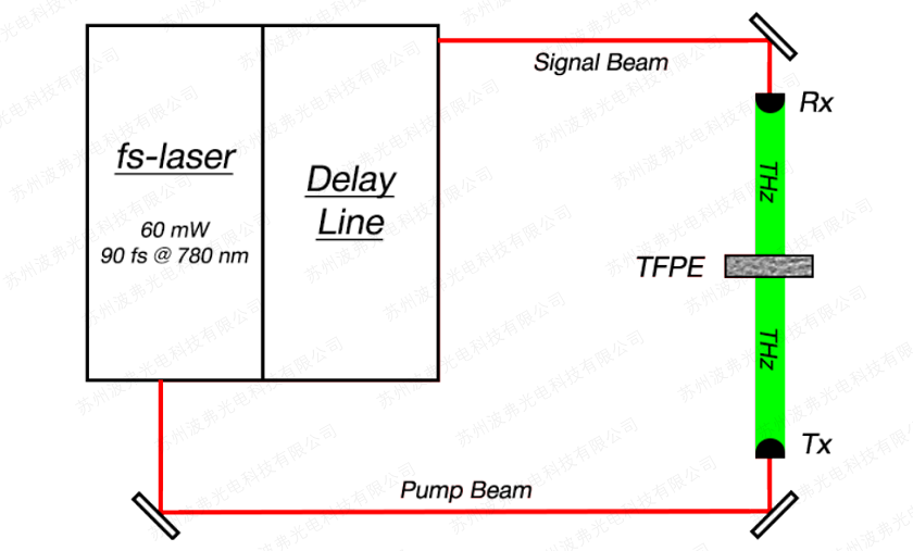 校準TDS系統過程以精確測量樣品厚度是使用TFPE的一個例子。 實驗裝置如圖1所示。1.
