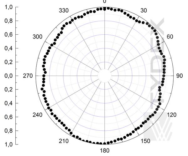如下圖所示,傳輸不依賴于角度(小數據傳播是由于我們的傅立葉測量的特征)。這意味著通過APC的輻射具有圓偏振,可確認APC的正確操作。